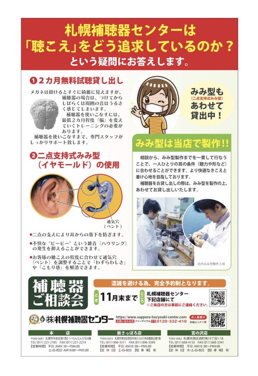 補聴器ご相談会(広報さっぽろ11月号をご覧ください)