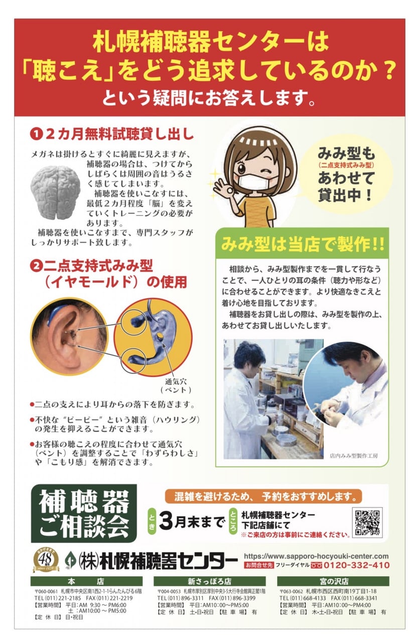 *いつも広告をご覧になりながら、なかなか一歩を踏み出せなかったお客様から、『もっと早く来ればよかった』とのお声をいただくことがございます。まずはお気軽にご相談ください。補聴器の聞こえをぜひ体感していただけましたら幸いです。